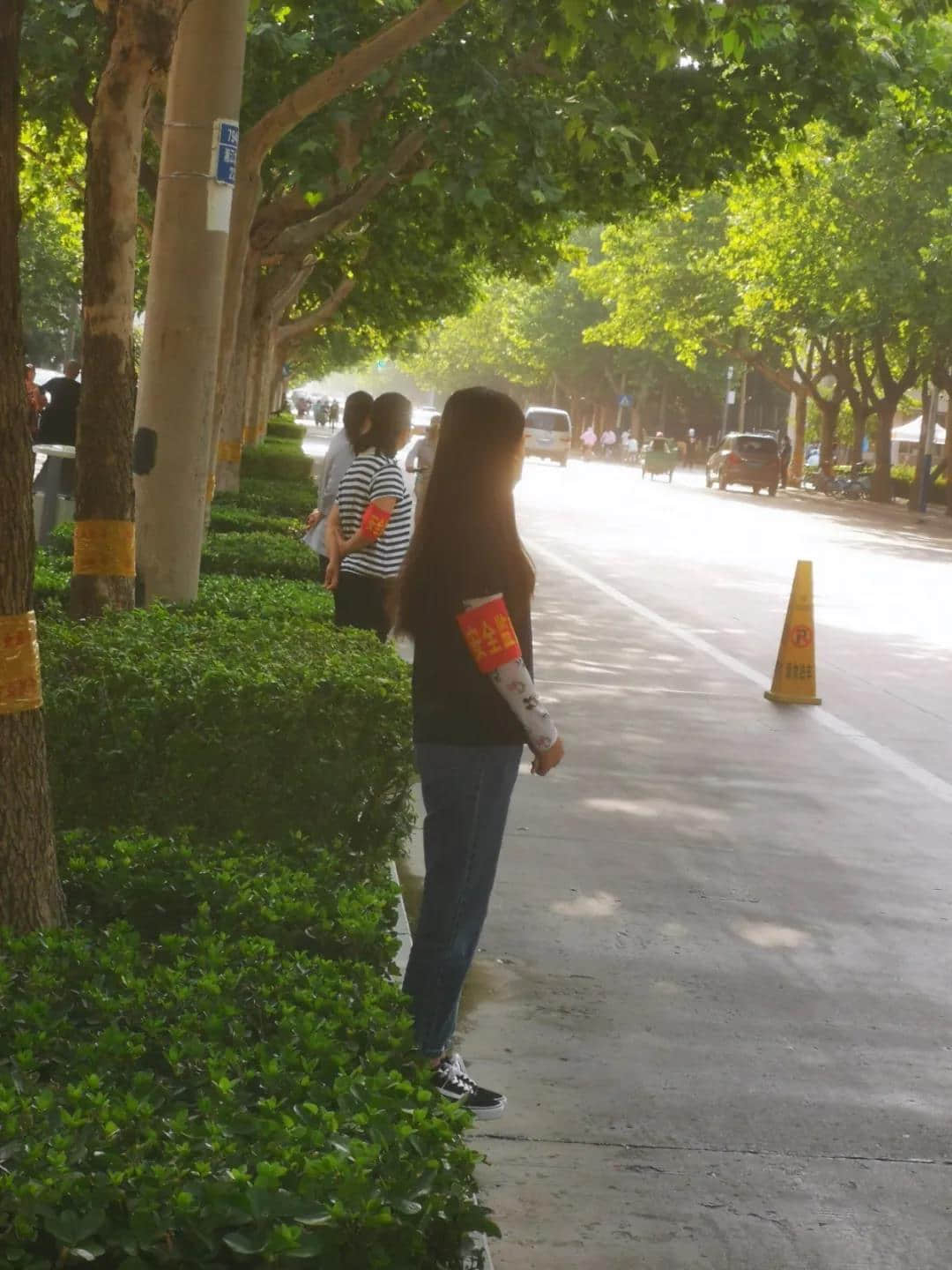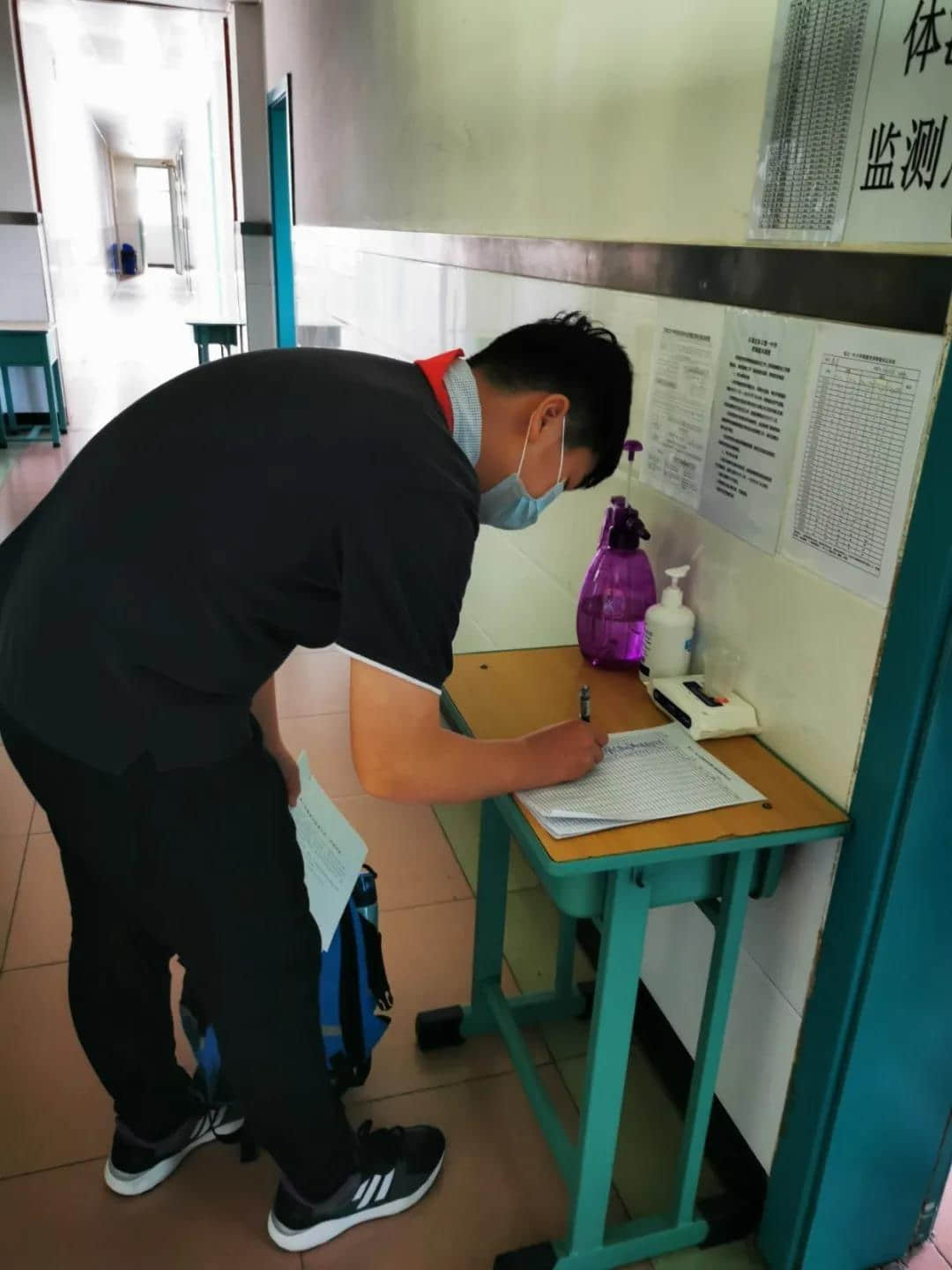 老师开车门迎接,红毯的尽头测体温、登记录、全面消毒。
