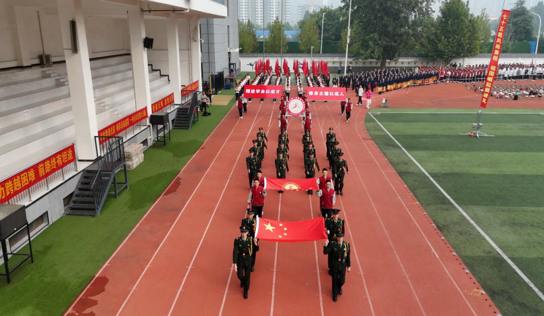 秋风红叶映照风华,在这硕果累累的季节里,在这绽放青春的赛道上,全体私立一中学子怀揣着殷切的希望,展现属于自己的风采,书写坚强与拼搏,践行博大的运动精神,追求更高、更快、更强的自我突破,为秋色平添了一抹绚丽。在学生们的期待与欢呼声中,林校长宣布:石家庄私立第一中学第三届秋季运动会正式开幕。
