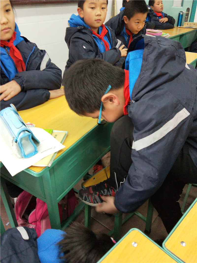 看我们三年级的同学们,穿衣服系红领巾、系鞋带比赛!