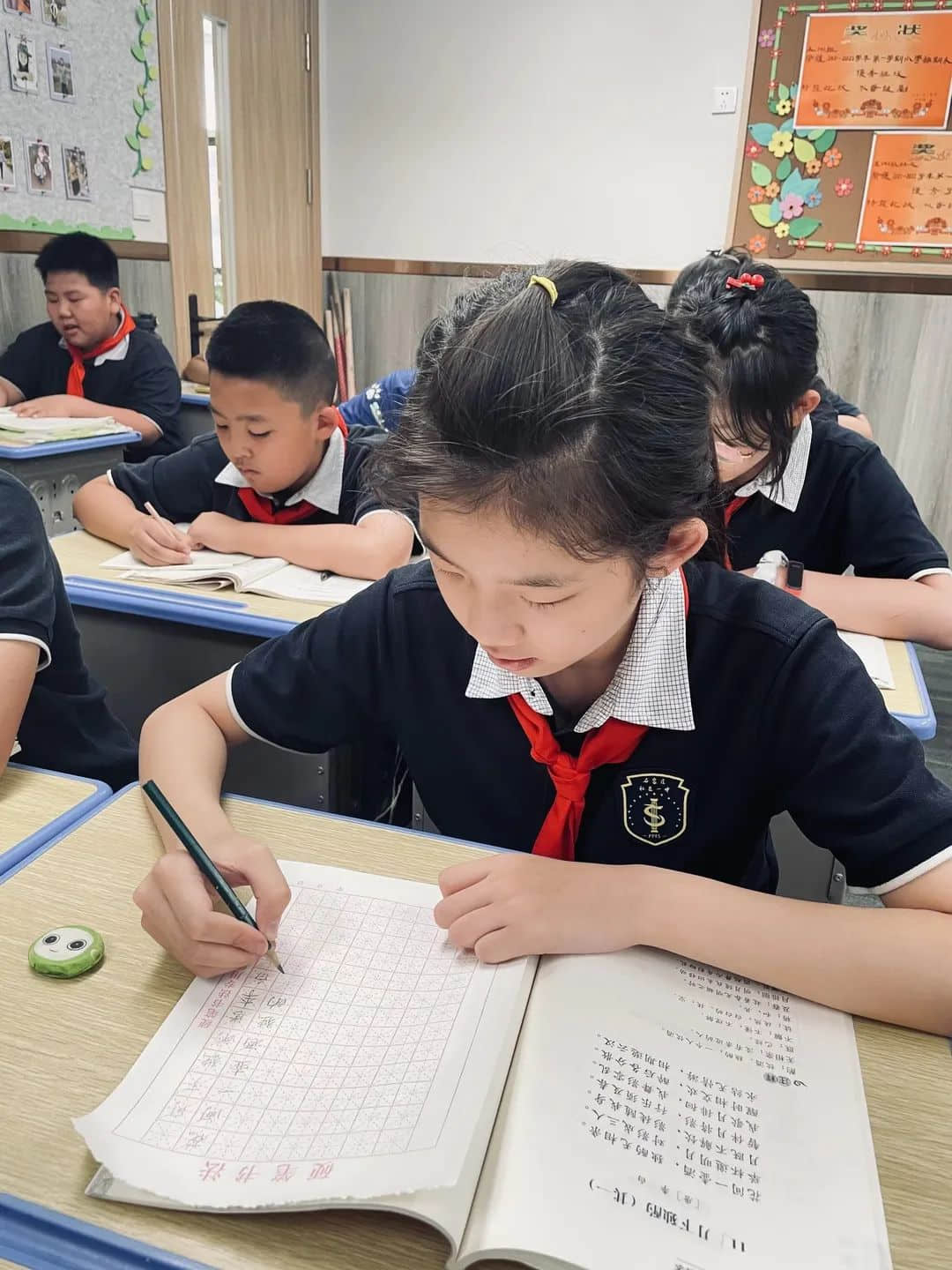 书法课上,老师让孩子们认真书写了一首自己最喜欢的诗,孩子们聚精会神完成的样子可真好看!