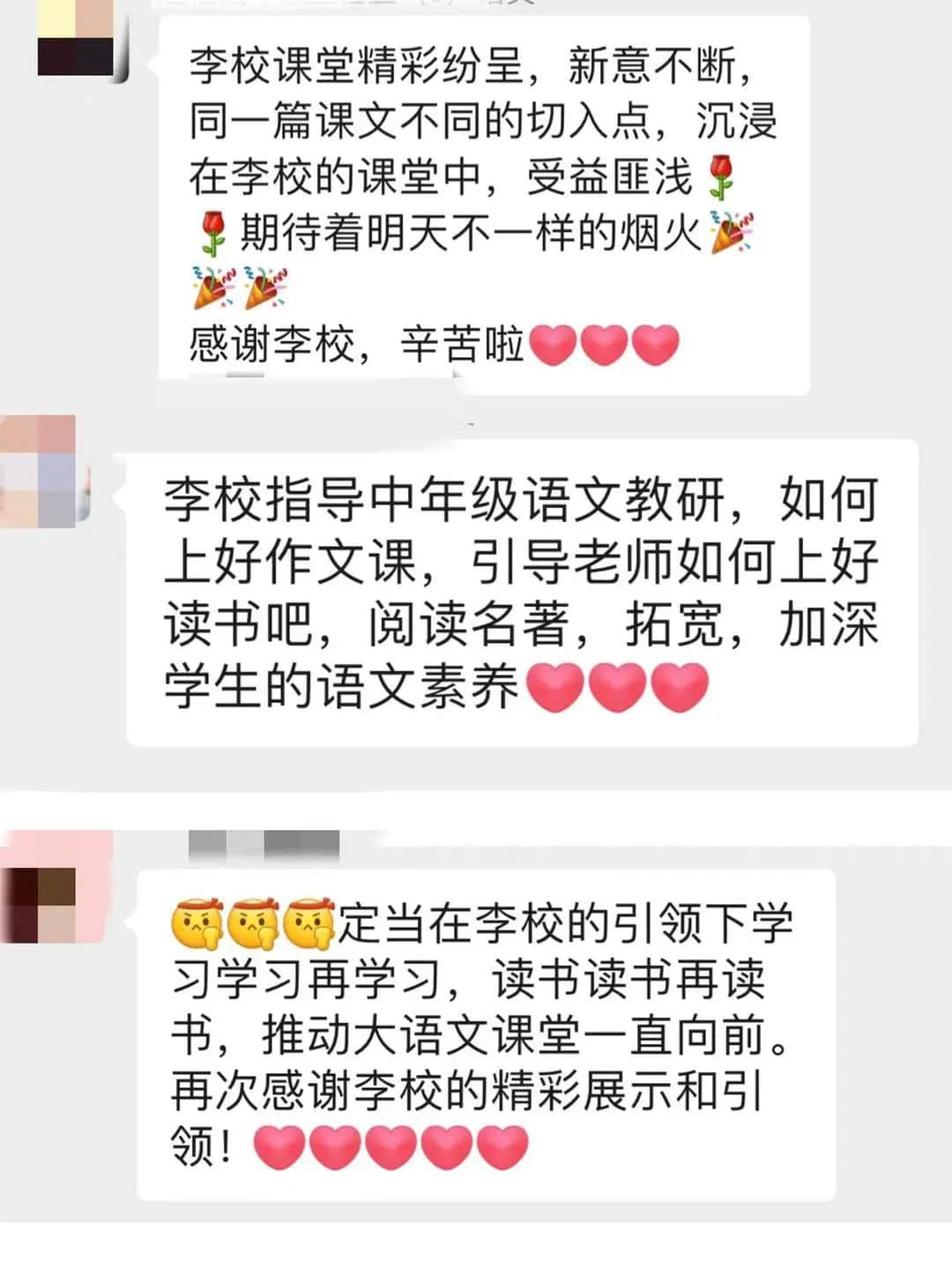 台上一分钟,台下十年功。在教学过程中,李校长尽量让学生分析文章内容并展示,既培养了学生自主学习的能力,又能锻炼学生公众场合的语言表达能力。