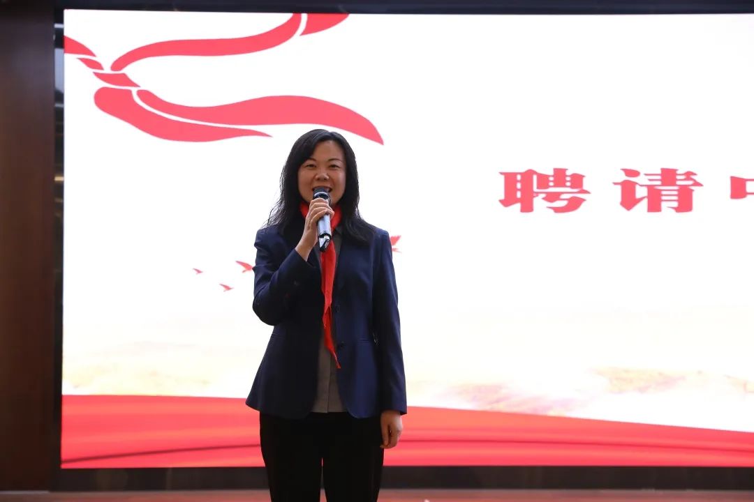 经学校少工委研究决定,聘请私立一中附属小学教师张红梅等,为新建中队辅导员。领导为中队辅导员颁发聘书,老队员为中队辅导员佩戴红领巾