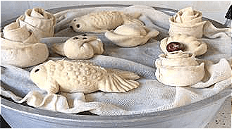开始制作啦!跟着妈妈,奶奶有模有样的捏出了各种图案的面团,有奥特曼、小金鱼、小刺猬、小花儿、小兔子等等,小朋友们好厉害呀!