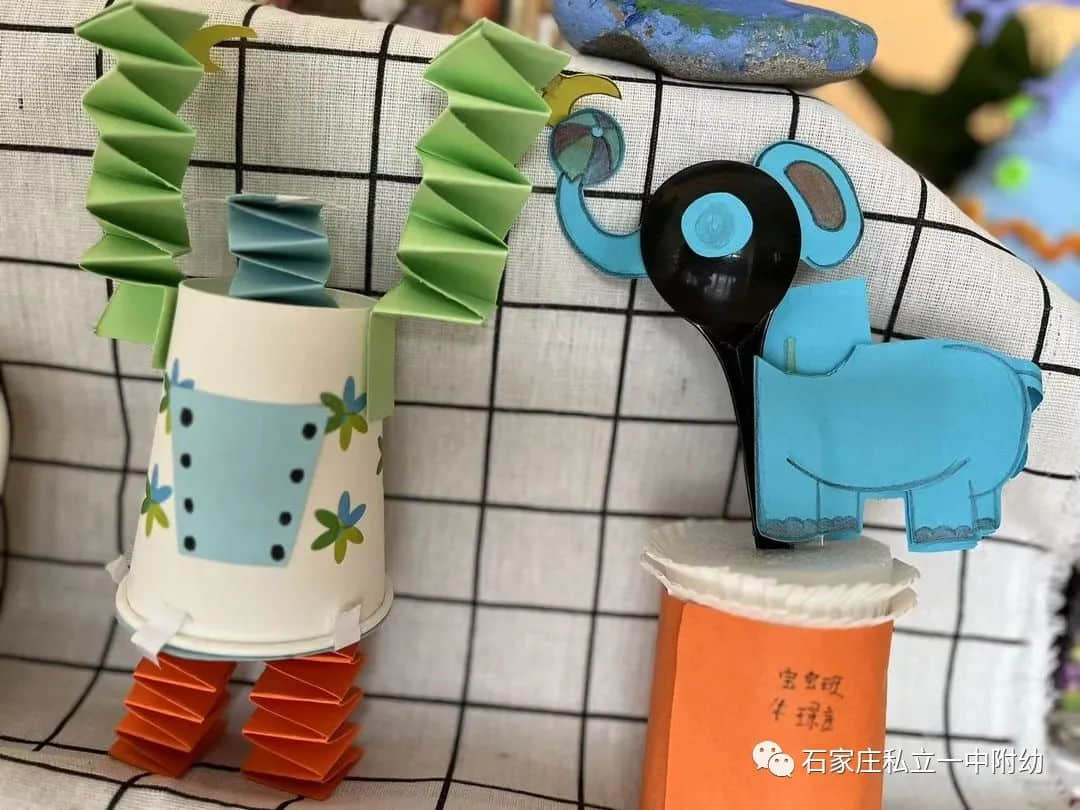 餐具除了能装美食,还能变身可爱的艺术品,小朋友们发挥想象,做出了不同创意的作品。