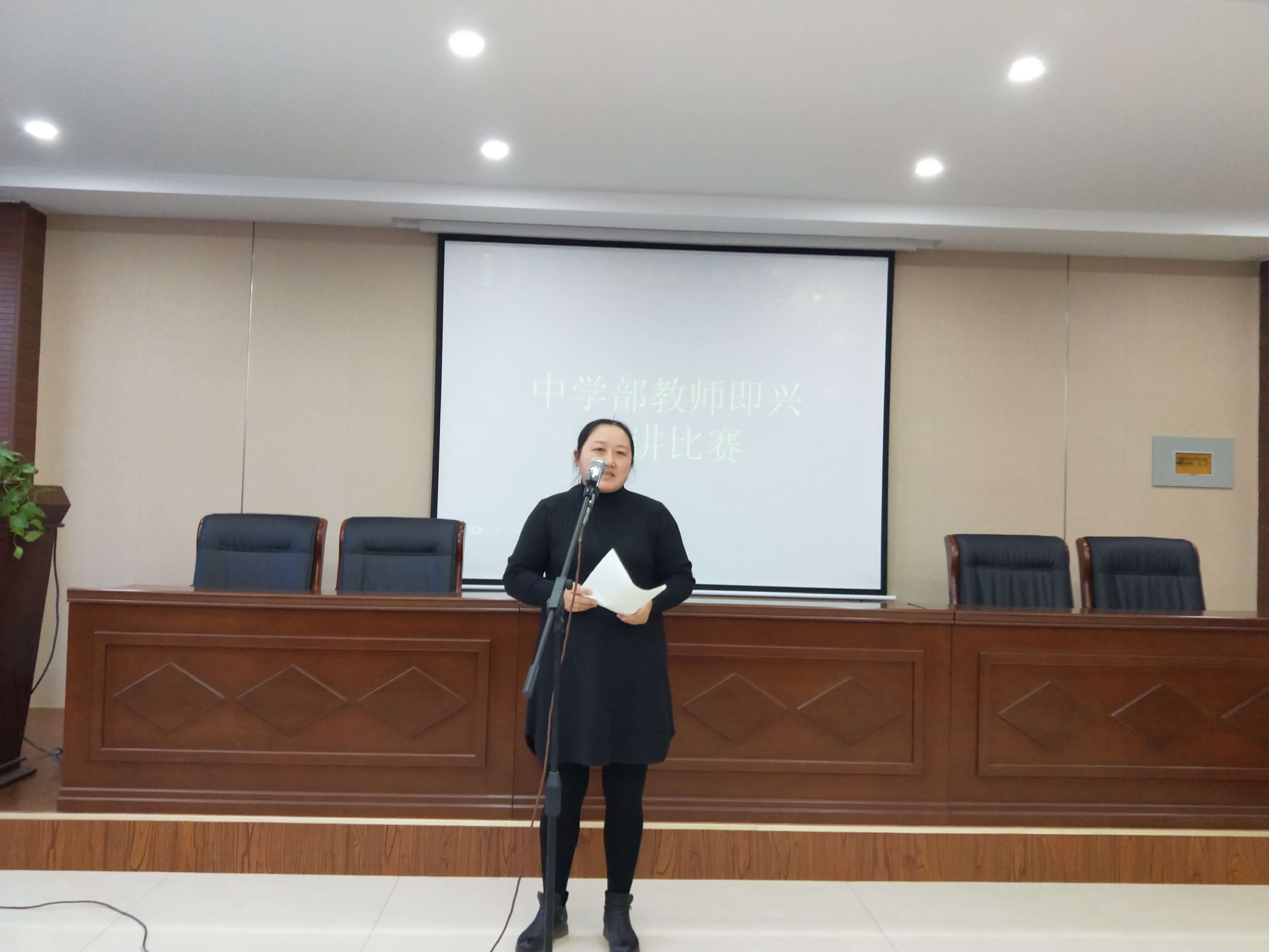 为丰富教职工业余文化生活,进一步加强教师职业道德建设,充分展示广大教师爱岗敬业、无私奉献的精神风貌,我校中学部于本周三、四举办了教师即兴演讲比赛。